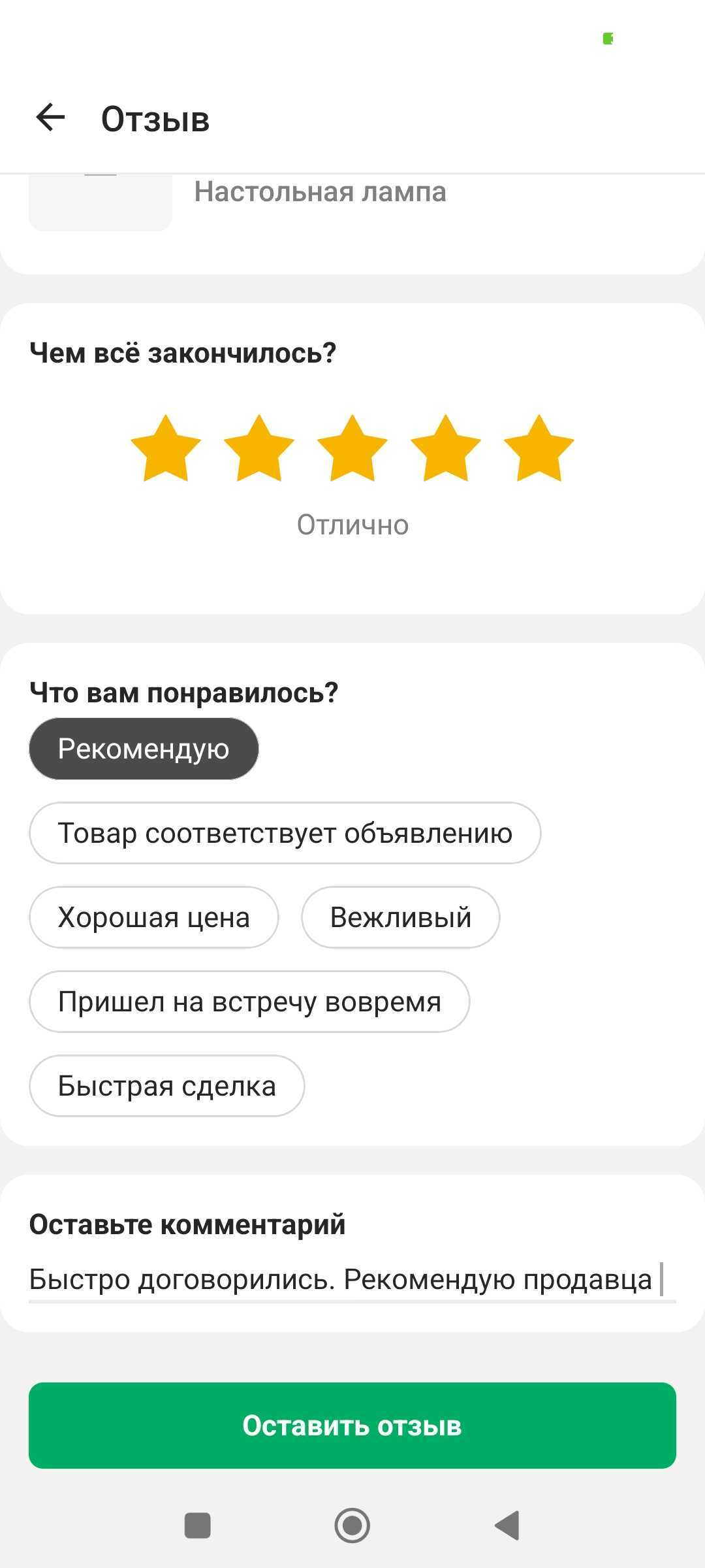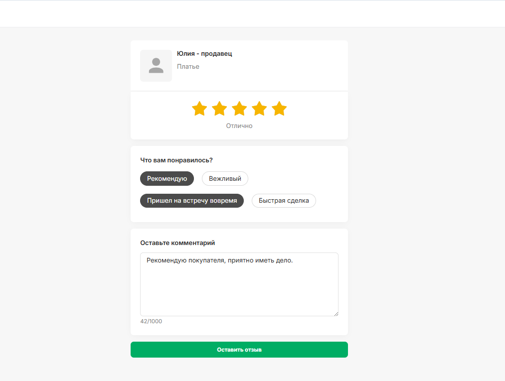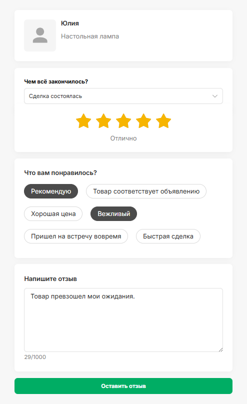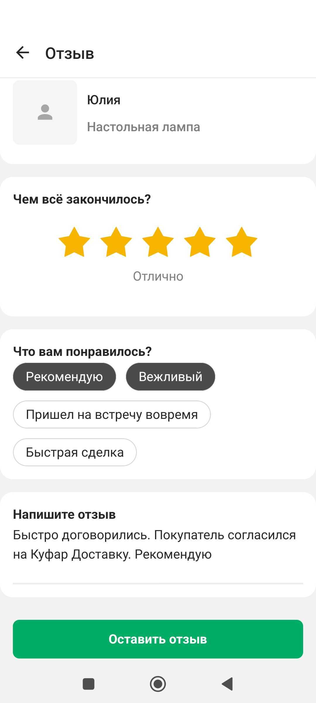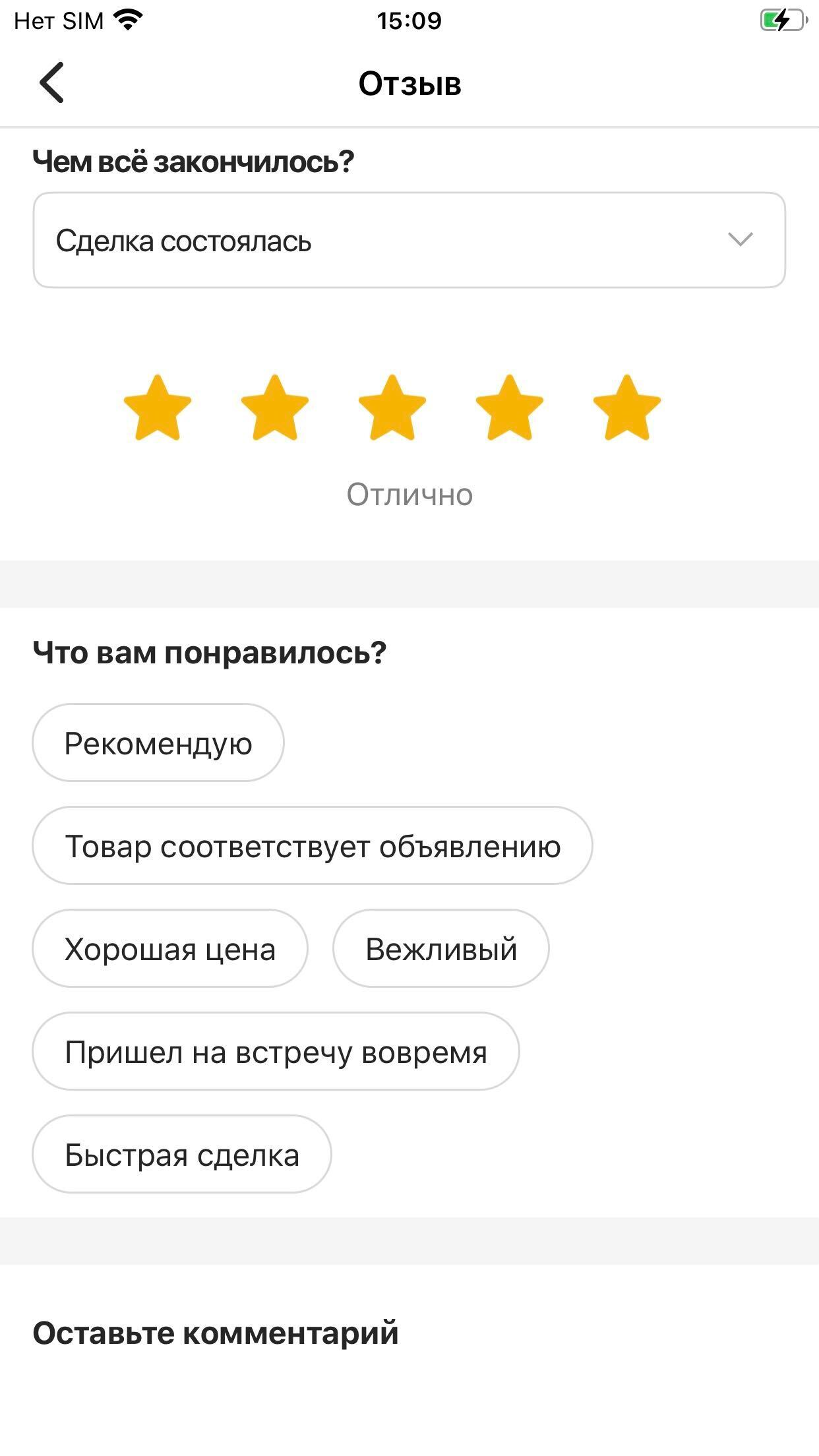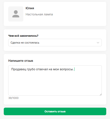 Если сделка состоялась, вы можете поставить оценку и оставить отзыв о продавце: