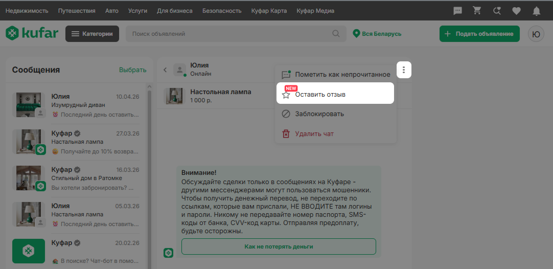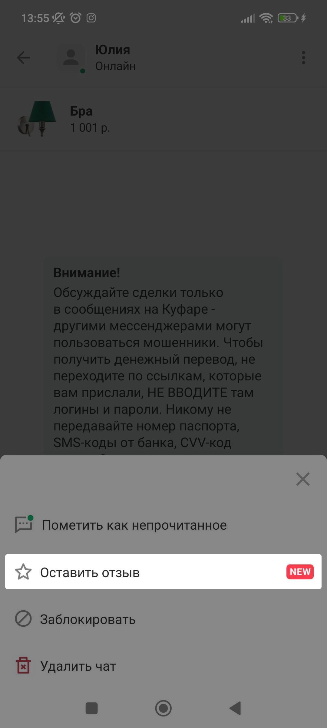 1. Необходимо деактивировать объявления, по которому имела место переписка на Куфаре с собеседником, которого вы хотите оценить.