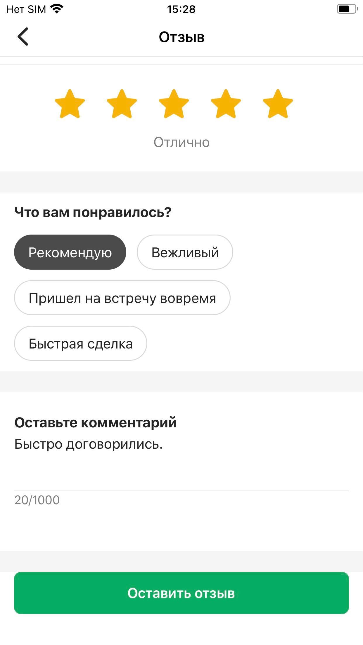 Если сделка состоялась, вы можете поставить оценку и оставить отзыв о собеседнике: