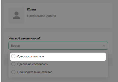 Если сделка имела место, выбирайте подпункт «Сделка состоялась».