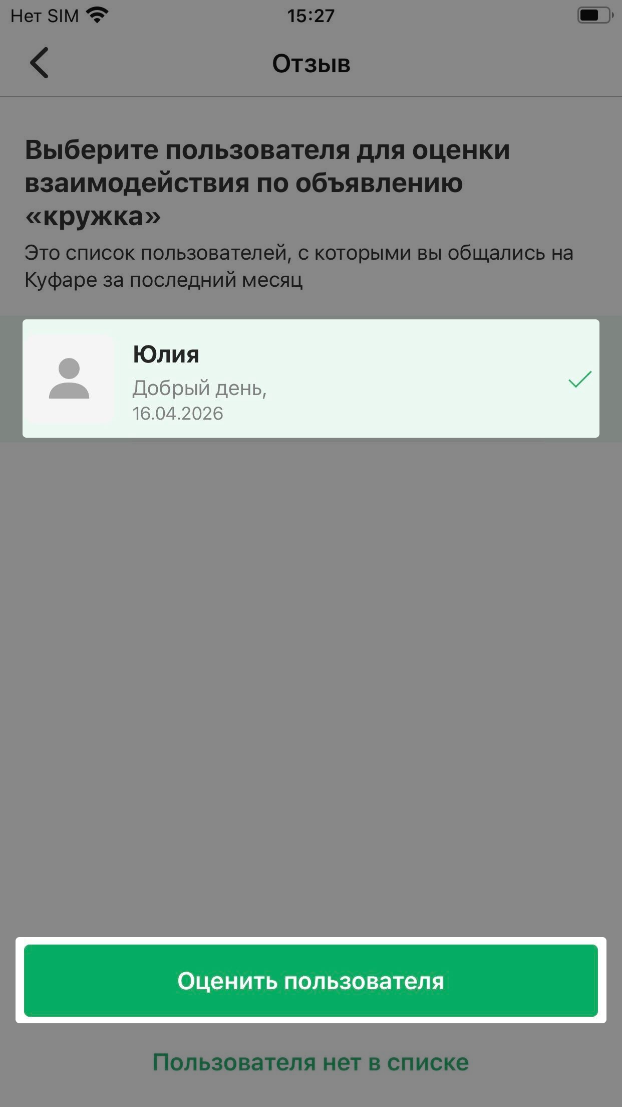 3. Выбрать из списка собеседников пользователя, которого вы хотите оценить/оставить отзыв.